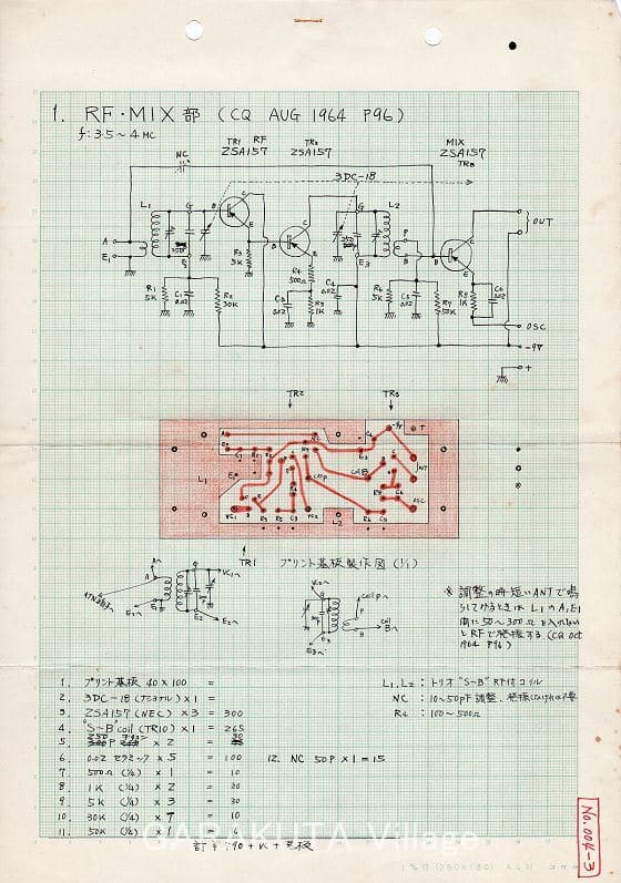 CQ誌、1964年8月号 96ページの記事を参考にした、3.5-4.0 MHz オールトランジスタ受信機です。